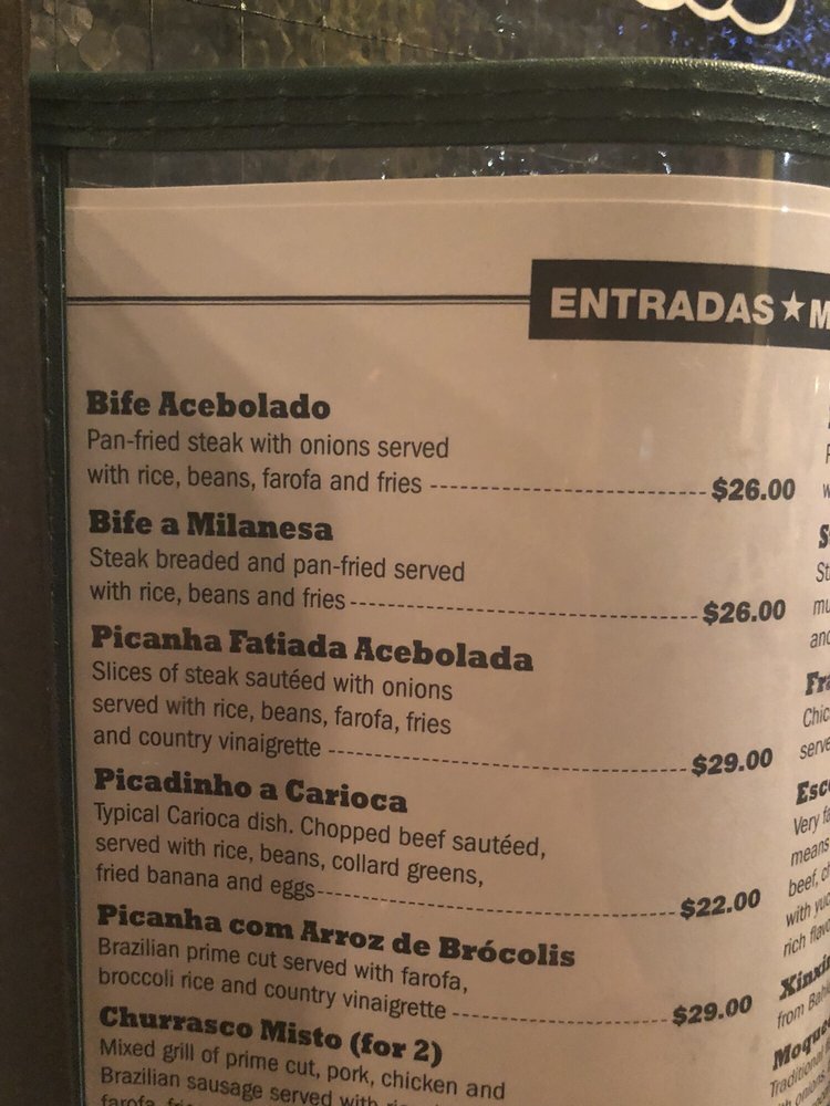 Brazilian national dish. Pork, sausage, carne seca in black bean stew, served with rice, collard green, pork rind, yucca flour and oranges.